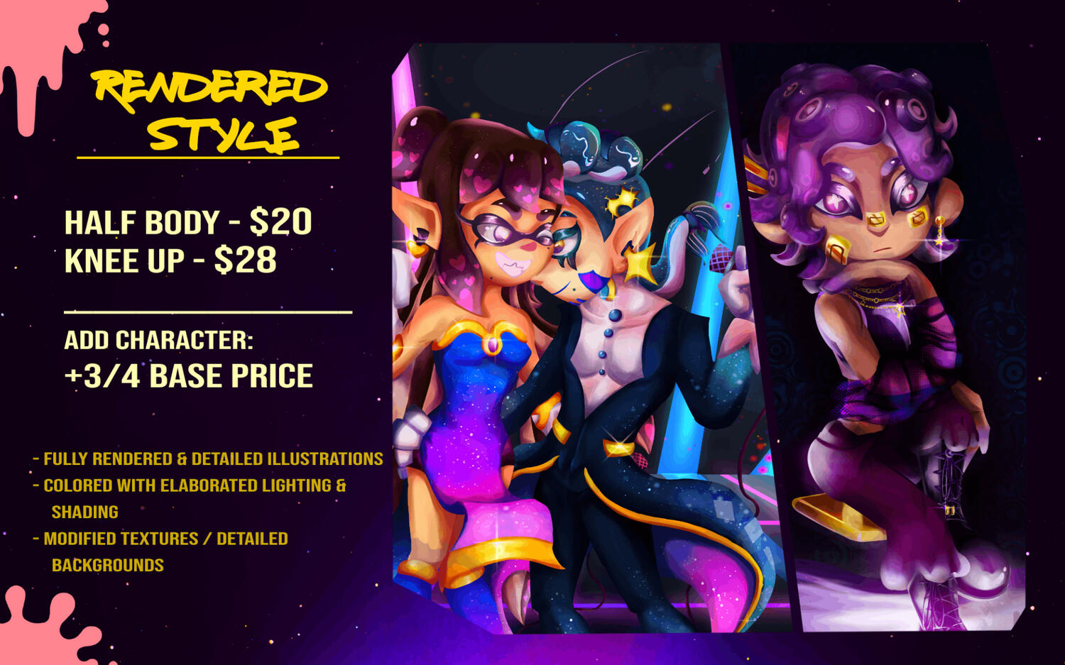 ★ My current main Splatoon style which is fully rendered and detailed! This style focuses on harmony with its details, lighting and background!